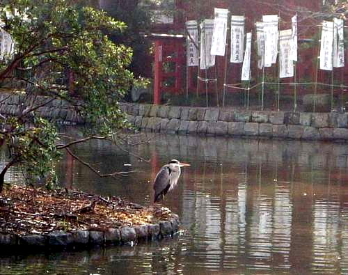 その源氏池のこれは五位鷺だよね。えっ青鷺なの? 白鷺とけん制しあいながら同じ枝に巣を作り子育てをしています。もう終わりましたが。
