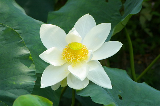 う〜ん、この紅蓮の開ききったお姿を拝み損ねてしまいました。なんかカンカン照りの日は蕾に戻るのが早いような気がします。 こちらの白蓮はまだ見事ですね。