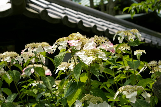 こちらの額紫陽花は先週は真っ白だったのに、ほんのりと赤みがさしてきました。