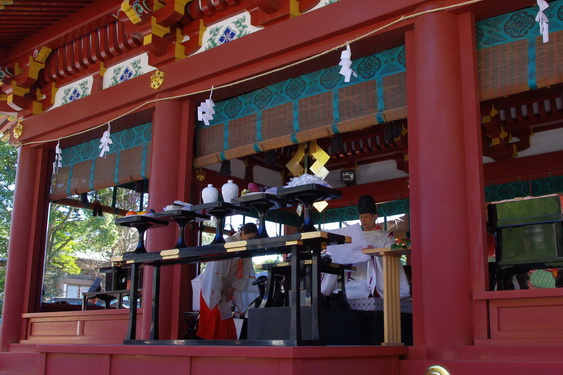 神主さんが祈祷を行っています。確かこのあと参列者の名前を読み上げていきます。