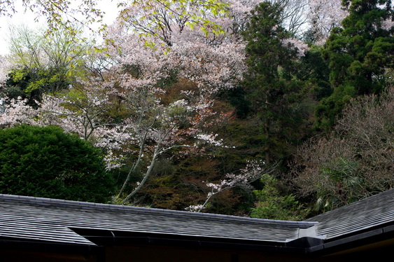 方丈の屋根の向こうの裏山の桜も見事に開いています。
