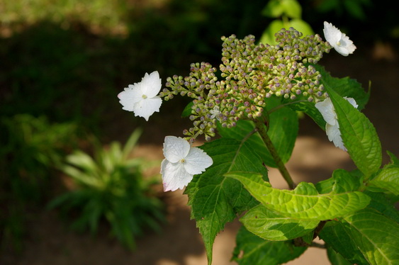 更に奥に行くと、ちょうど宝蔵の先の井戸の向かい側ぐらいに、これまた思わず見落としそうなちっちゃい紫陽花が。良く見かけるんですが、何て言うんですかね?