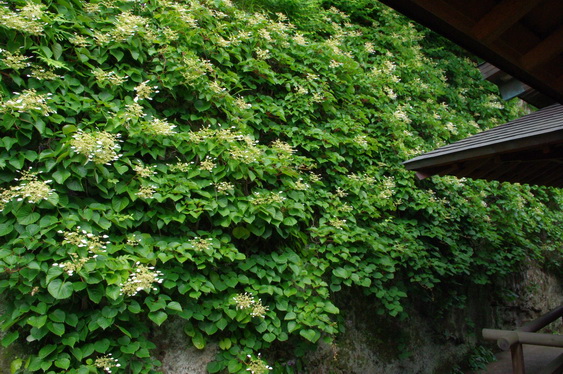 一見アジサイに似ていますが、でも違います。植物の学術分類もいくつかの体系がありますが、一般的にはこれはユキノシタ科イワガラミ属。対するアジサイはユキノシタ科アジサイ属。ちなみにユキノシタはユキノシタ科ユキノシタ属です。