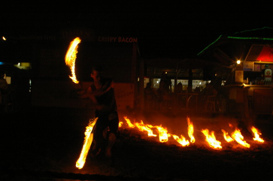 ということで、今年の由比ヶ浜ファイアーショーは無事大盛況でスタートです。このあと両手のふさがったアラムさんに口移しでビールを・・・、じゃなかった。 |