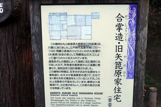 その説明板。でも三溪園さん。これ間違ってますよ。 東慶寺で火事があったのは永正6年でなくて永正12年(1515年)です。それにこの仏殿は江戸時代初期の様式で、1634年(寛永11年)に千姫が新築で寄進したものというのが現在の定説です。