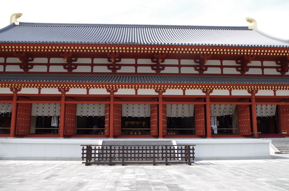 大講堂は2003年の再建。正面41m、奥行20m、高さ17mあり、伽藍最大の建造物です。