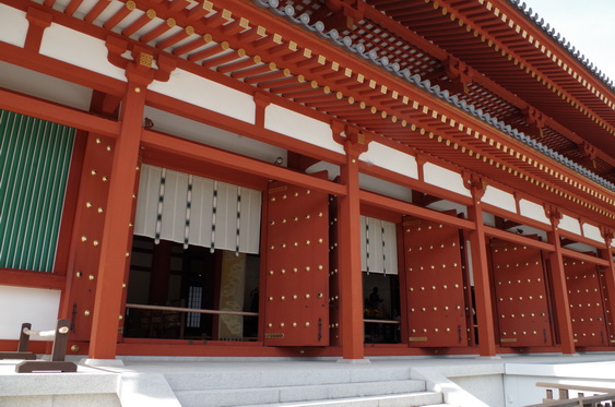平城京の大極殿もこんな感じだったでしょう。朱塗りであることも含めて。