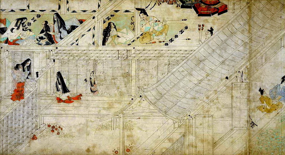 ↓それ以外は背景。舞台で云うならベニヤの絵 絵巻は今なら映画。この寝殿は桁行3間に描かれているが・・・、