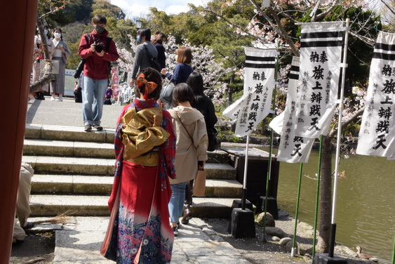 また着物のお嬢さんが。向こうでカメラを持っているのは彼氏ではありません。貸衣装屋さんのオプションのカメラマン。