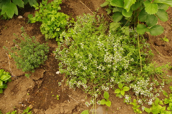 そのタイムの左にはバジルとローズマリー、右上はイタリアンパセリ。 バジルもイタリアンパセリも使ったことは無いのですが備えあれば憂い無しと。バジルは植えたばかり。ローズマリーの上にちょこっと写ってる葉っぱはローリエです。