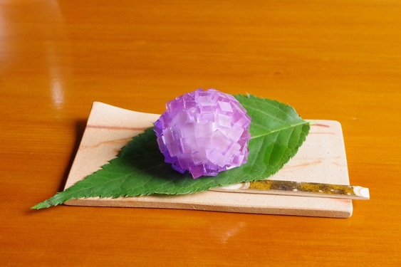 今日の上生菓子は紫陽花モチーフ。綺麗ですね。