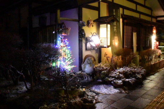 でもこの簾は雰囲気壊さない? 雪が降ったので臨時の対処でしょうか。