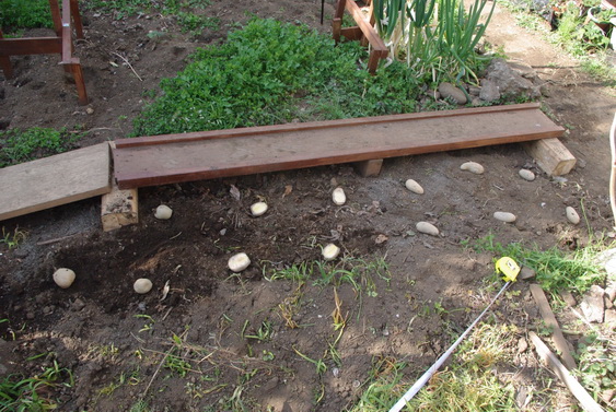 ジャガイモ収穫の5回目です。4株残っていたので収穫を2回に分けようかとも思っていたのですが、既に定植後100日を超えたし、第2期畑作りと第2期地下貯水池工事が始まったので全部掘りあげてしまうことに。残っている四株はここです。