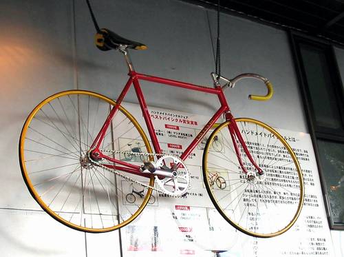 その2ピストですね。ブレーキも付いていないから。吊してあるってことは大夫昔に作ったものかもしれませんが、でも普通のピストですね。